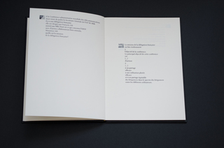 Travail qui retranscrit graphiquemnt une conversation durant la première exposition mondiale des telecom en 1971. La particularité de cette interview, est qu’elle présente beaucoup de moment nonparlé. J’ai décidé de représenter le blanc par le vide. Cela donne des mise en page où le blanc est très présent. Cela représente le doute, les non-dits des intervenants. Je donne aussi de l’importance à l’expression des personnes qui regardent et à ceux qui prennent par à la conversation. Ceci rythme l’édition et donne un aspect supplémentaire à la conversation. Le tout est relié dans une petite édition soignée en similicuire qui représente l’ambiance de cette interview filmée.